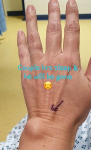 I had a general anaesthetic so was unable to see the cyst being removed the op was successful the lump is now gone. I am resting up & it should take a couple of weeks for me to be fighting fit. Today I can now feel and move my fingers which is really good as emptying my bag yesterday was really hard to do. I think breaking my arm and some other bones a few years back definitely gave me a heads up on how to get that mission accomplished. As Ostomates we always find a way to get over these little hurdles 🙂